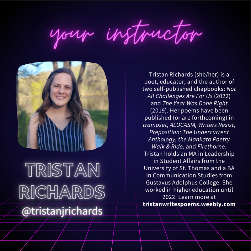 Listen to This is a 4-week virtual poetry course I am teaching in February 2023 with The Loft Literary Center. I'm so excited to explore two of my favorite things: songs & stanzas. Was that too cheesy? Oh well.